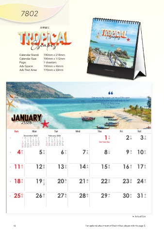 Calendar Size: 190mm x 172mm