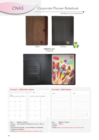 • Personal Memoranda • 3 year Reference Calendars • Notes (optional logo printing subject to additional costs)